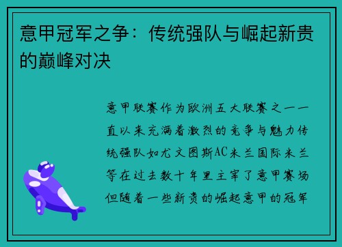 本文将深入探讨穆勒赛场智慧与加内特铁血防守的完美融合,解析两者在各自领域中的卓越表现及其相互交融的精彩之处。穆勒以其敏锐的赛场智慧、精准的球场判断和独特的进攻思路,成为足球界的战术大师;而加内特凭借强悍的防守和无畏的拼搏精神,书写了篮球场上铁血防守的传奇。本文将从技术、战术、心态与影响力四个方面,详...